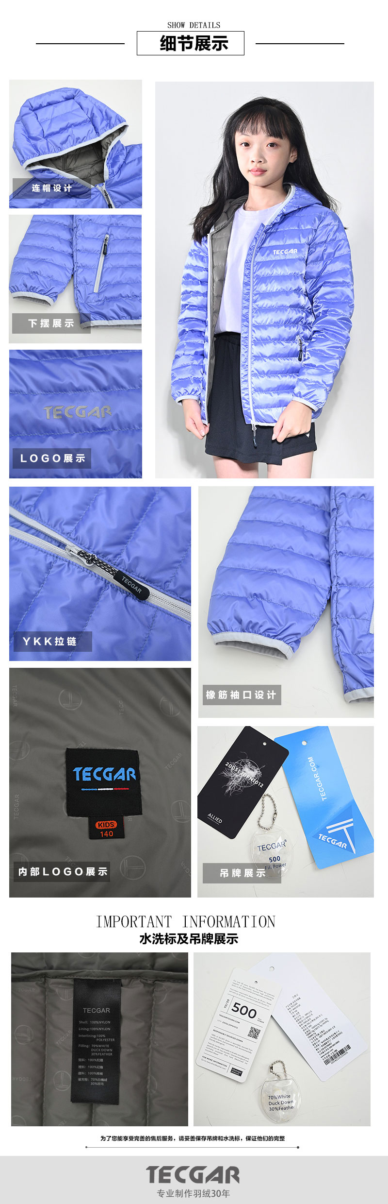 童装时尚亮面布保暖羽绒服