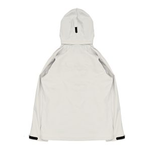 – Bungeed style drawstring at brimmed hood and hem