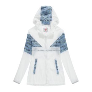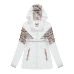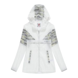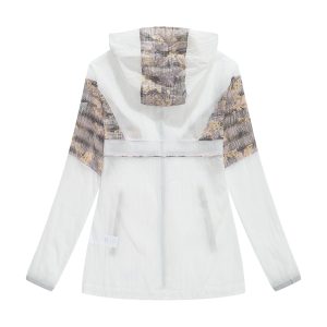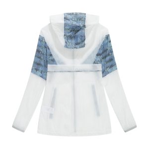-Bungee-style drawstring at brimmed hood