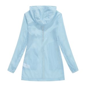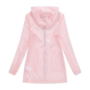 -Bungee-style drawstring at brimmed hood